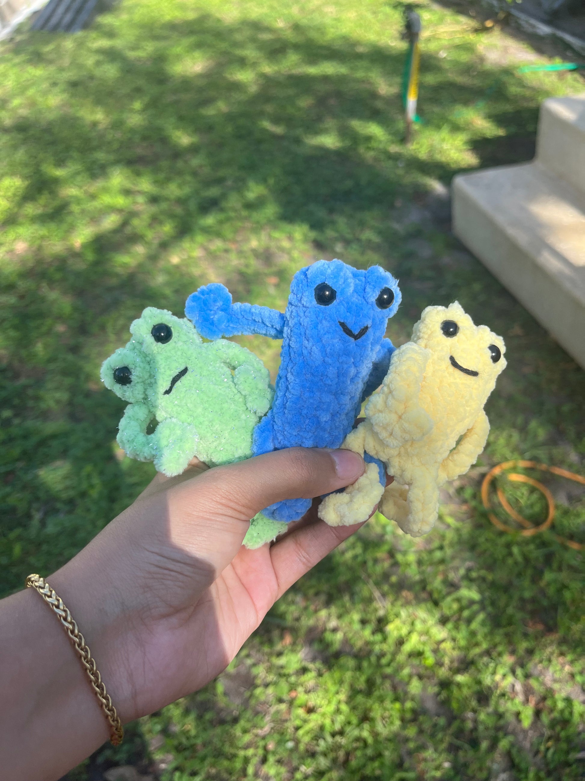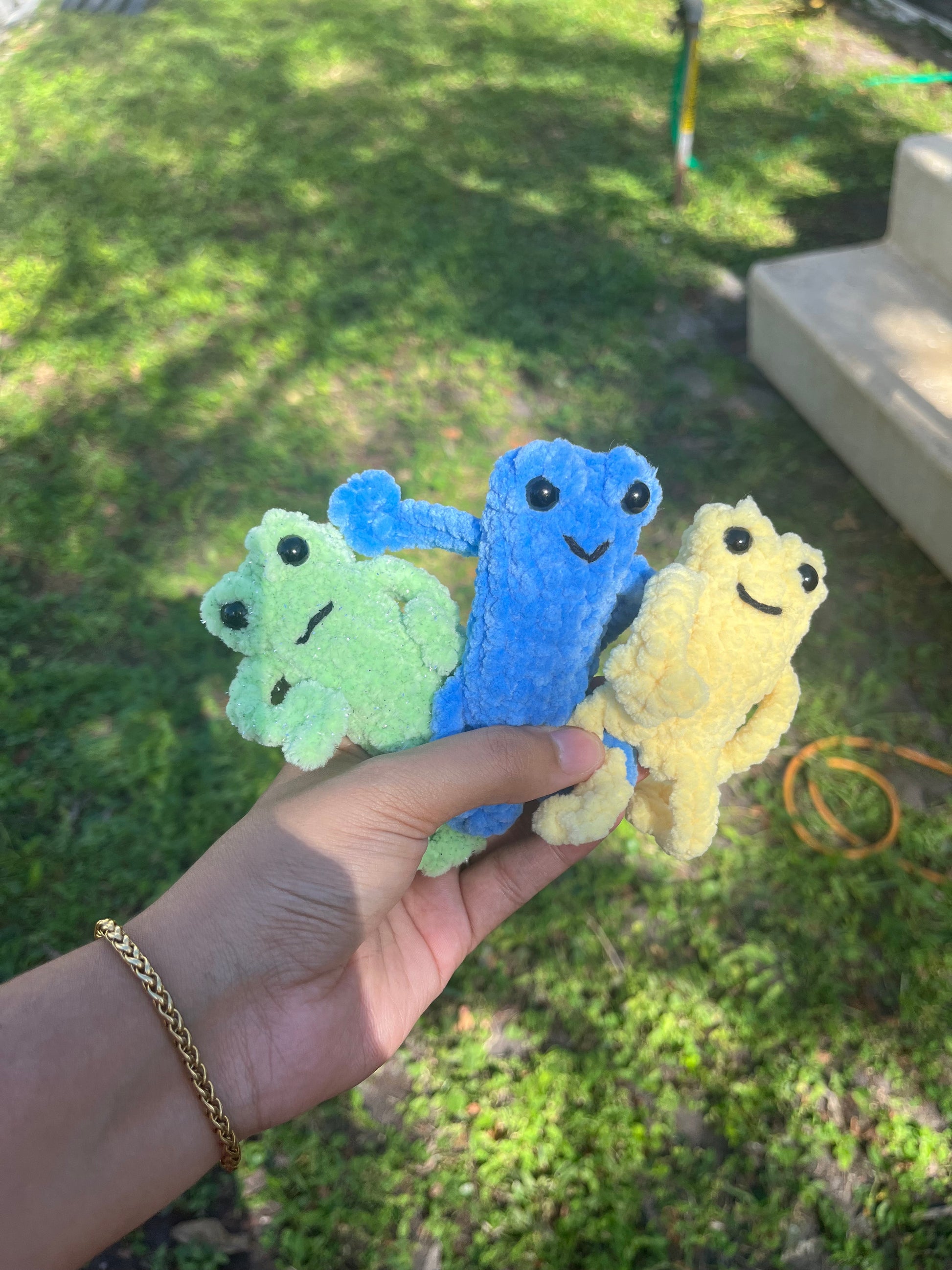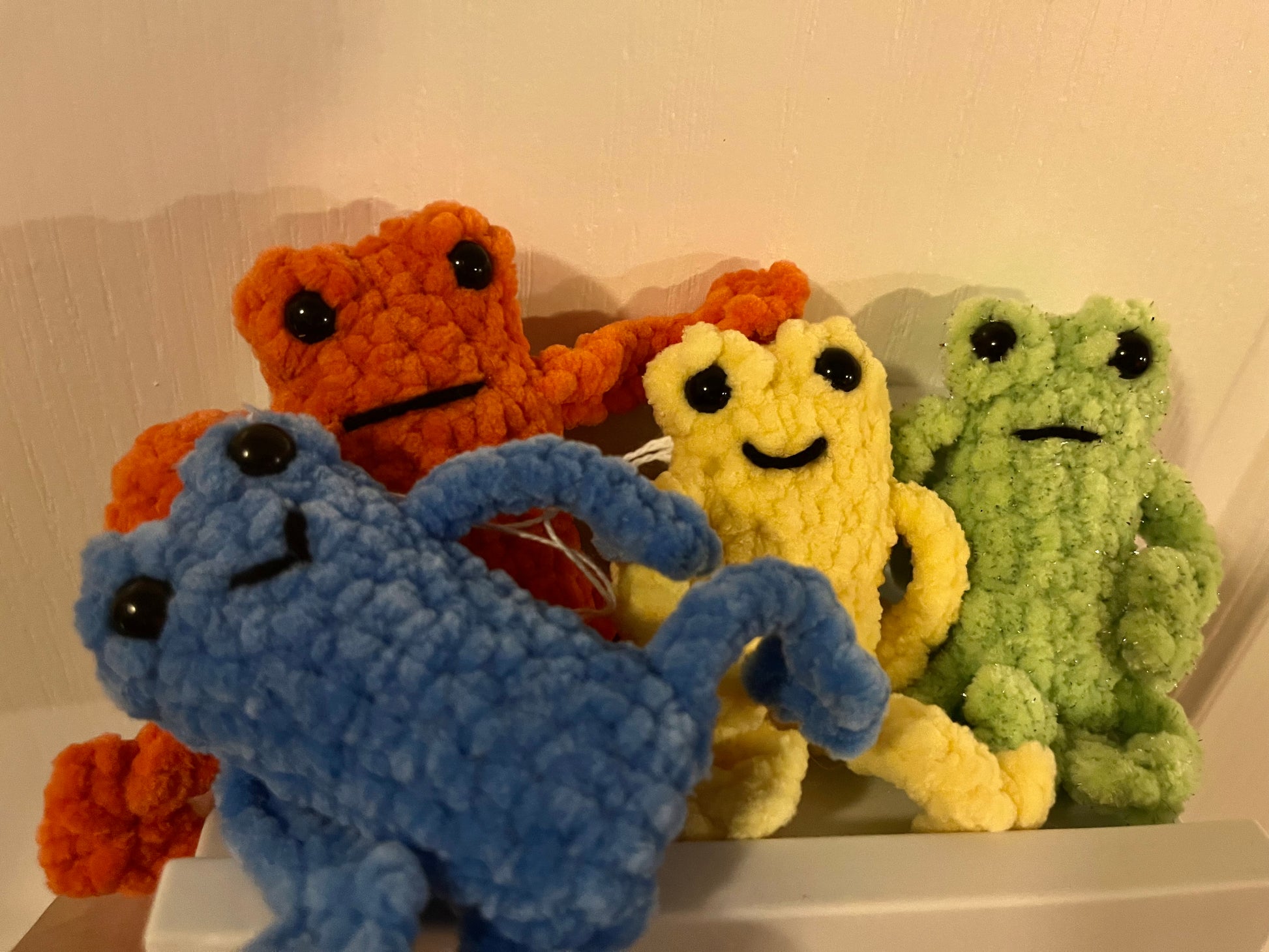 Introducing Leggy Froggies, theseย little guys are the perfect friend to have; Scrimby (green) ๐, Grumbly (yellow) ๐, along with Gamby (blue) ๐ ย and canโt forget about Dosky (orange) ๐งก like to cause mischief wherever they go.ย Perfect for any frog lover or as a unique and playful addition to any room. Ribbit-tastic!
