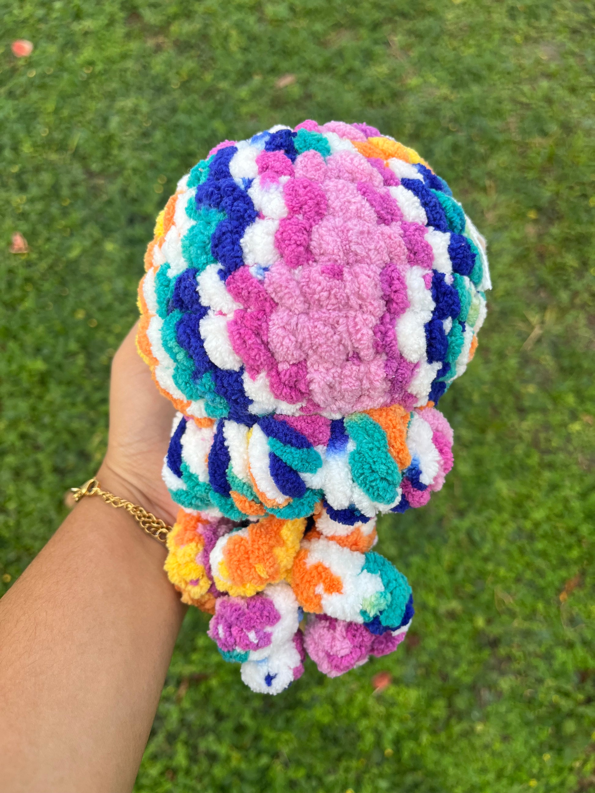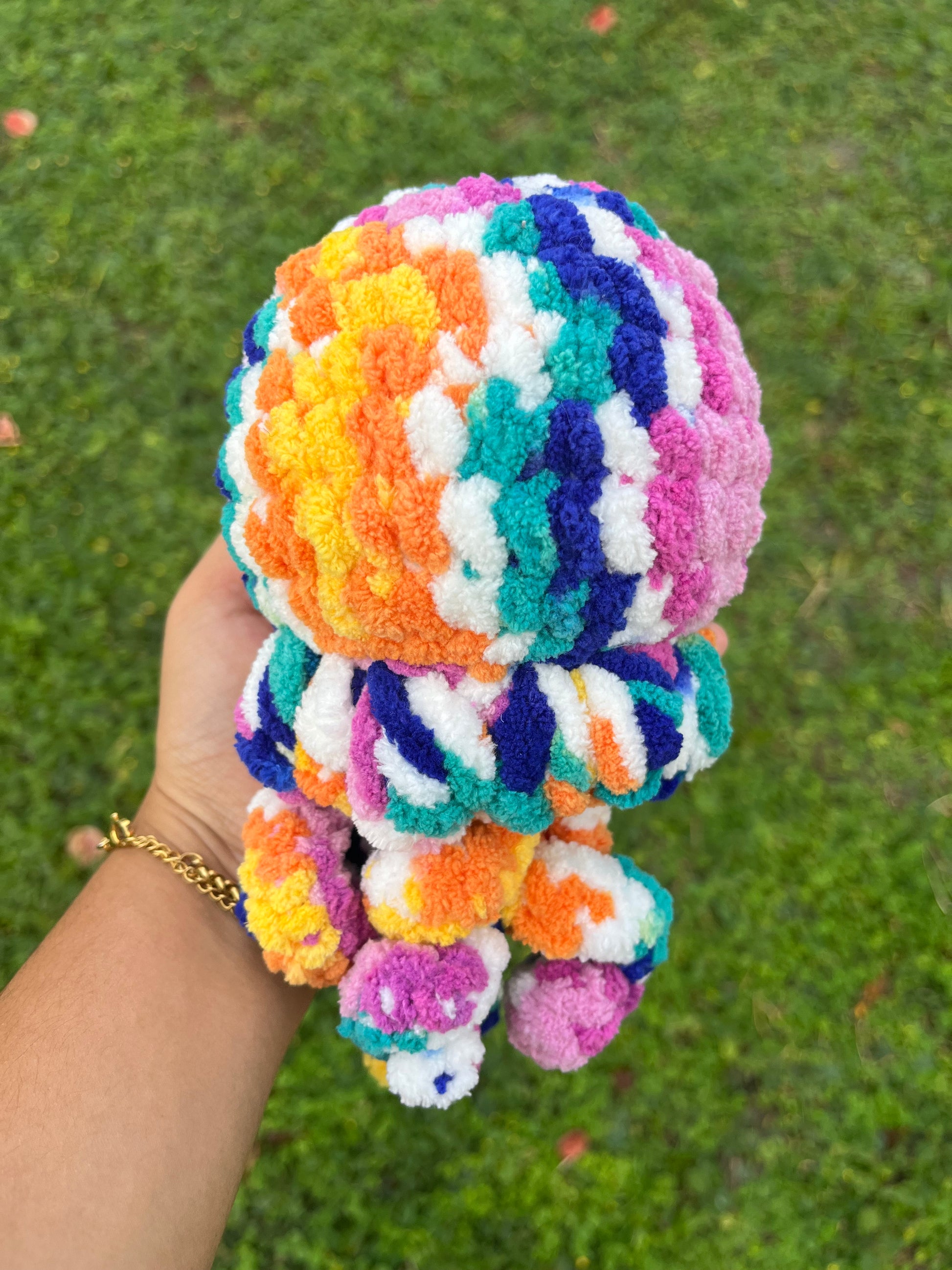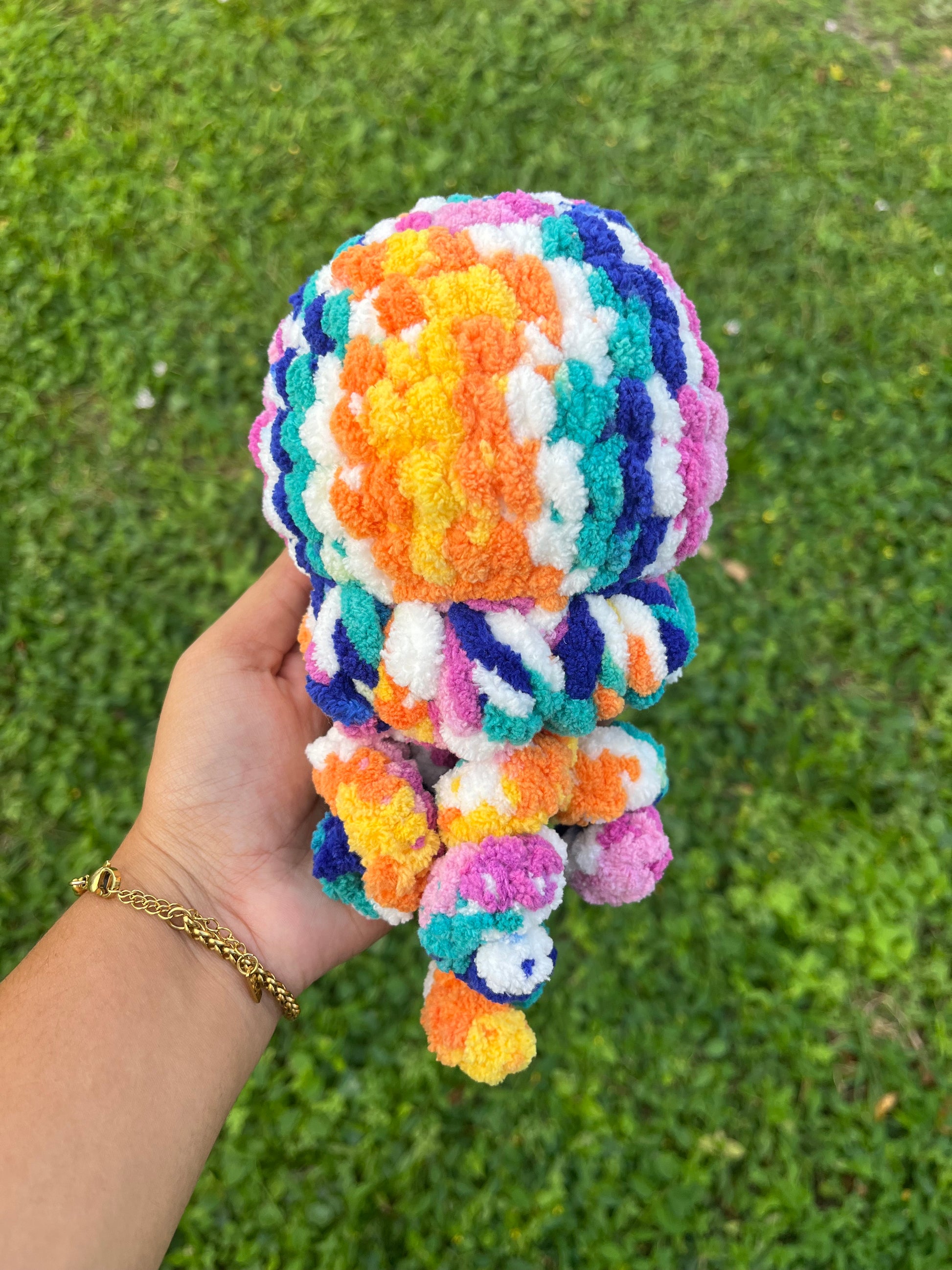 Add a splash of color to your room with our Tutti Frutti Jellyfish! These crochet sea creatures are sure to brighten up any space, bringing a playful touch to your decor. Hang them from the ceiling or display them on a shelf for a fun, quirky addition to your home. Dive into the fun with our Tutti Frutti Jellyfish!